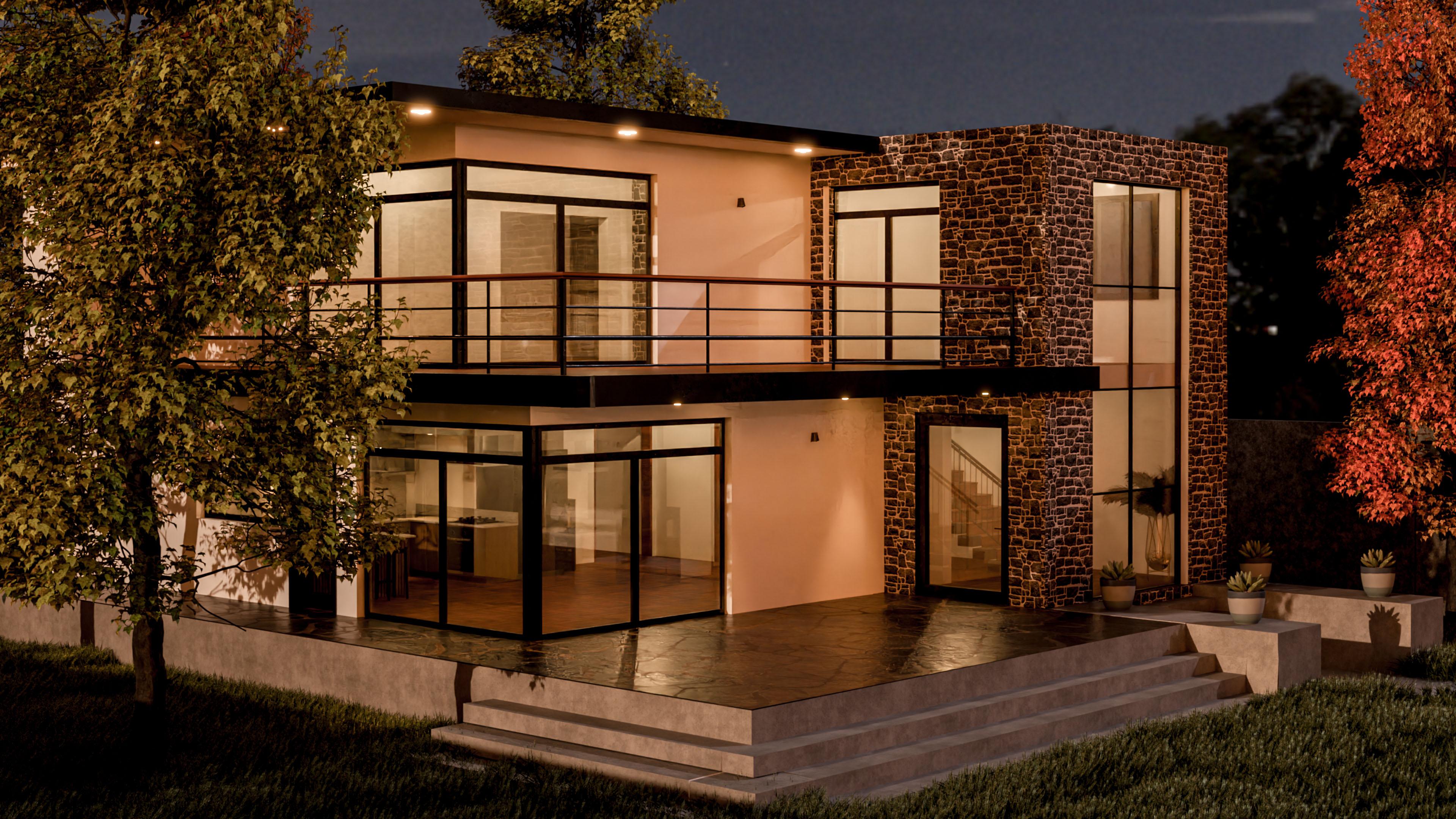 This project showcases a contemporary, two-story residential design that combines aesthetic appeal with functional living spaces. Created with meticulous attention to detail, the architectural layout emphasizes a seamless blend between indoor and outdoor spaces. Its modern design, characterized by clean lines, expansive glass windows, and natural stone accents, creates an inviting atmosphere for potential homeowners who value style and functionality. This project is available for purchase on our website, with additional customization options to suit individual preferences.